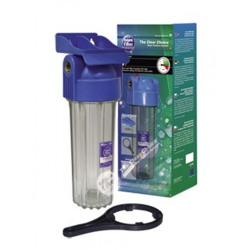 Seria FHPR12-B1-AQ-N-carcase pentru filtre 10" este destinata sistemelor pentru apa rece. Este constituit din: cap pompa si cap de alama cu filet de 1/2" si doua inele(O)- unul plasat in jurul firului colector si celalalt in capul filtrului interior. Designul din doua-parti asigura performanta maxima la etansare si usurinta de inlocuire a cartusului de filtru. Carcasele FHPR12-B1-AQ-N sunt compatibile cu o gama larga de cartuse standard de 10" de sedimente/carbon/ filtre diverse utilizate la scara larga. Carcasa este echipata suplimentar cu accesorii ca: cartus filtrant, cheie, suporti de montaj- consultati produsele asociate.