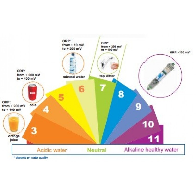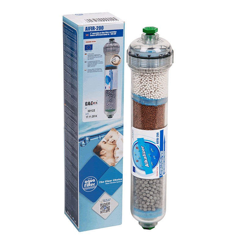 Cartusul contine un strat bioceramic pentru alcalinizarea apei prin cresterea PH-ului, asftel creste nivelul PH-ului cu 2 puncte in functie de debit si apa de intrare.