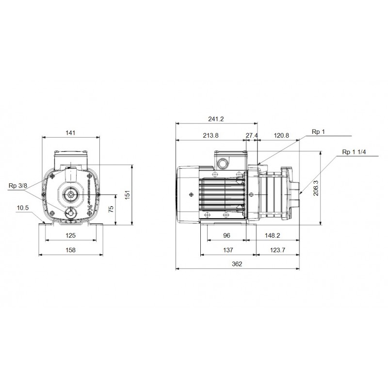 Pompa de apa centrifuga compacta, este recunoscuta pentru fiabilitatea ei, verticala, monobloc cu port axial de aspiratie si port radial de refulare. Arborele, rotorul si camerele sunt realizate din otel inoxidabil. Piesele de admisie si refulare sunt realizate din fonta. Etansarea mecanica a axului este o etansare cu inel O special conceputa, neechilibrata. Cuplajul conductelor se realizeaza prin flanse cu fileturi de conducta Whitworth interne, Rp (ISO 7/1). Pompa este echipata cu un motor 1 fazic asincron, cu montare pe picior, racit cu ventilator.