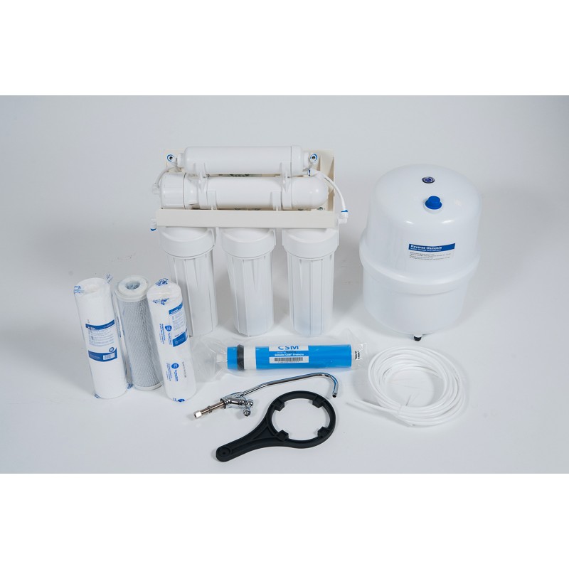 Purificatorul de apa cu Osmoza Inversa RO5 contine un Set complet de cartuse, Membrana Osmotica, Adaptori, Robinet, Cheie si Tanc. Singurele consumabile pentru acest purificator sunt: Set de cartuse RO4 (se inlocuieste la 6 luni)+ Membrana TFC-50F (se inlocuieste la 3 ani). Le vedeti la sectiunea Produse Asociate. Osmoza inversa este proectata sa lucreze la o presiune de min. 2.5 bar pana la max. 6 bar. In cazul in care nu aveti presiunea la intrare de 2.5 bari trebuie sa alegeti un model cu pompa.